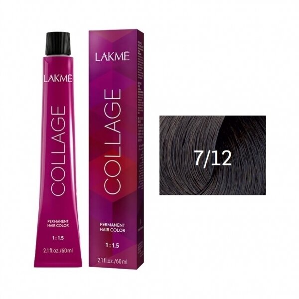 LAKMÉ, COLLAGE, Перманентная крем-краска для волос №7/12, Средний блондин пепельно-фиолетовый, 60мл