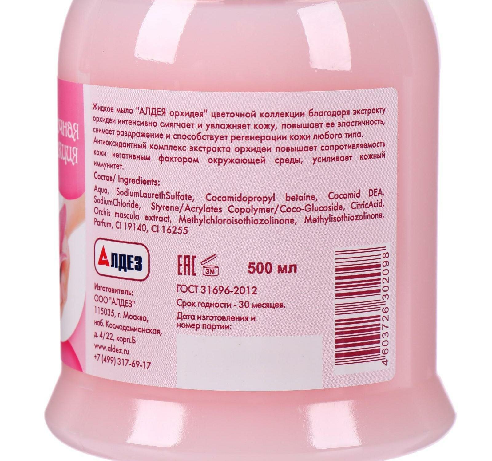 Жидкое гигиеническое мыло Алдея "Орхидея" с дозатором, 0,5 л