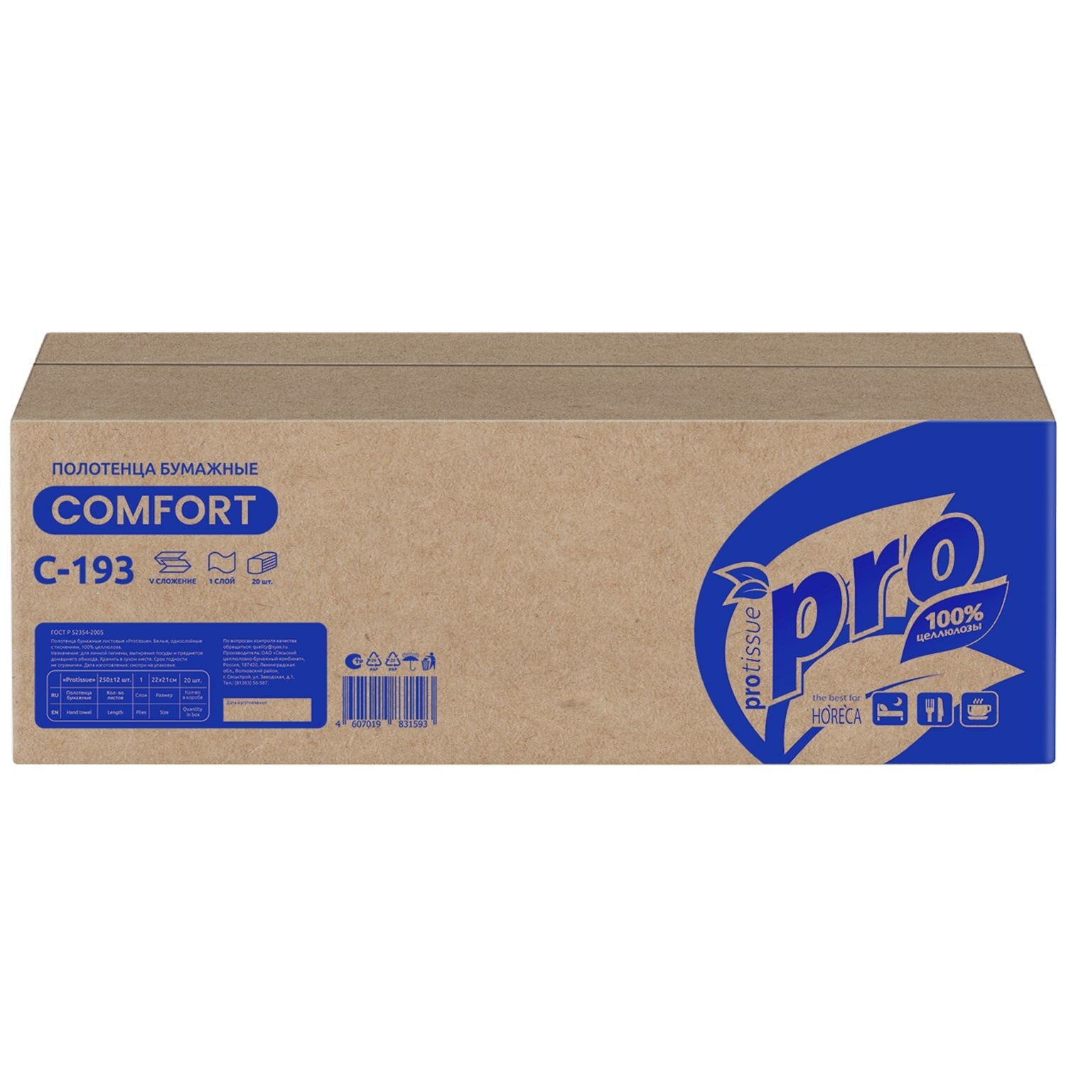 Полотенца бумажные Protissue Comfort C-193 V-сложения 1 слой 20 пачек (идентичны арт С192 но более высокой плотности)