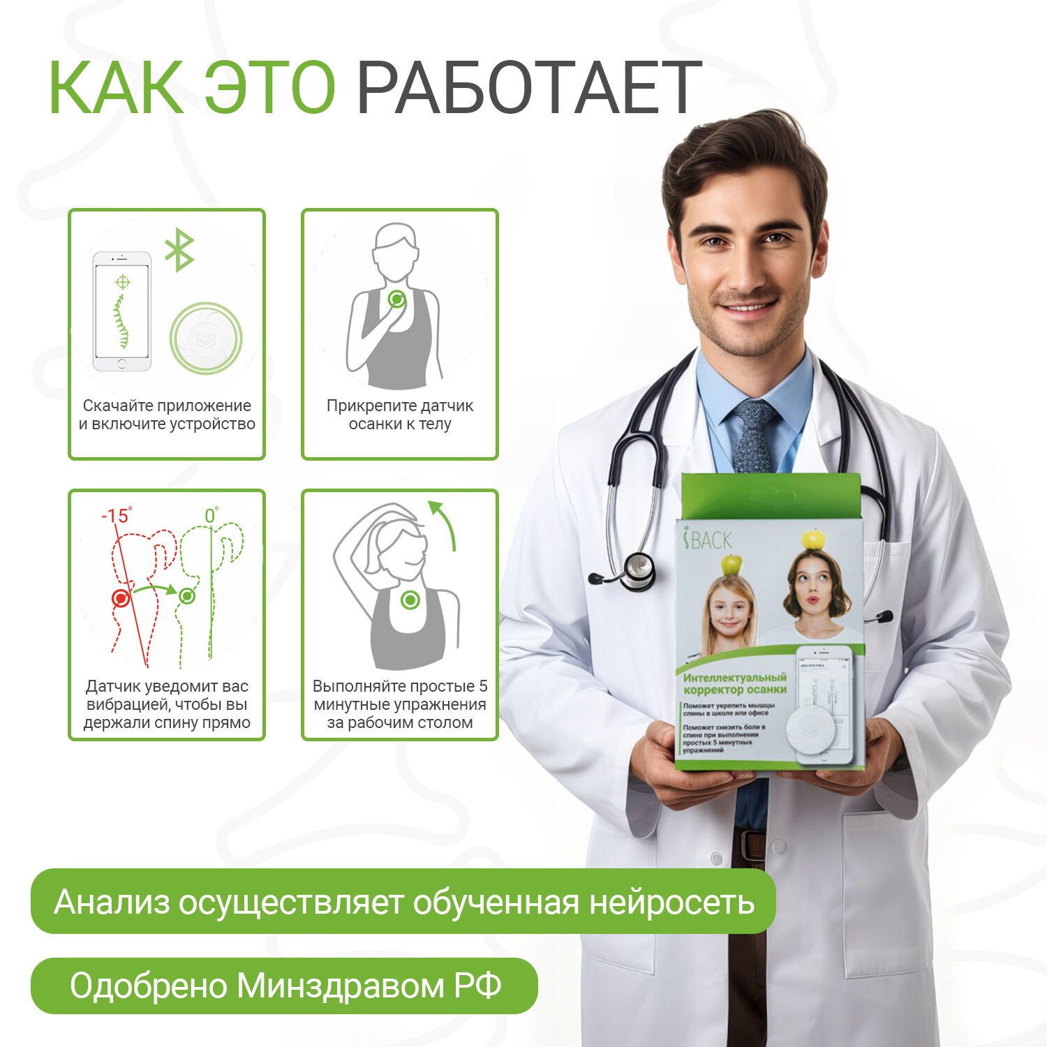 Умный корректор осанки iBACK электронный с вибрацией для взрослых, для детей, для подростков, для осанки корректор женский, мужской, детский интересное: