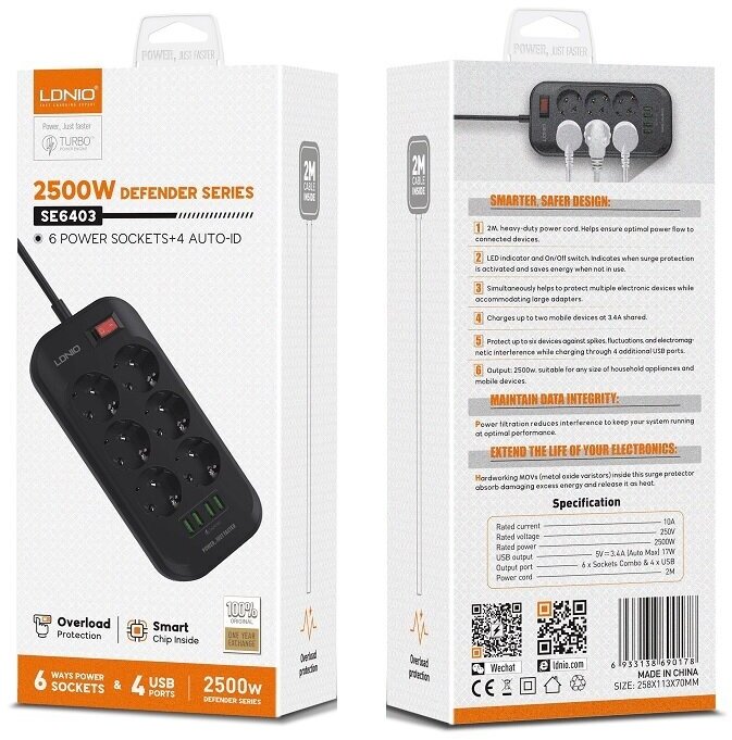 Ниже Вы можете прочитать отзывы на Сетевой фильтр-удлинитель LDNIO SE6403 10A 2500Вт на 6 розеток, 4 USB 3.4А EU длина 2,0 м (черный), ознакомится с подробными характеристиками, посмотреть интересные обзоры и фотографии на Сетевой фильтр-удлинитель LDNIO SE6403 10A 2500Вт на 6 розеток, 4 USB 3.4А EU длина 2,0 м (черный).