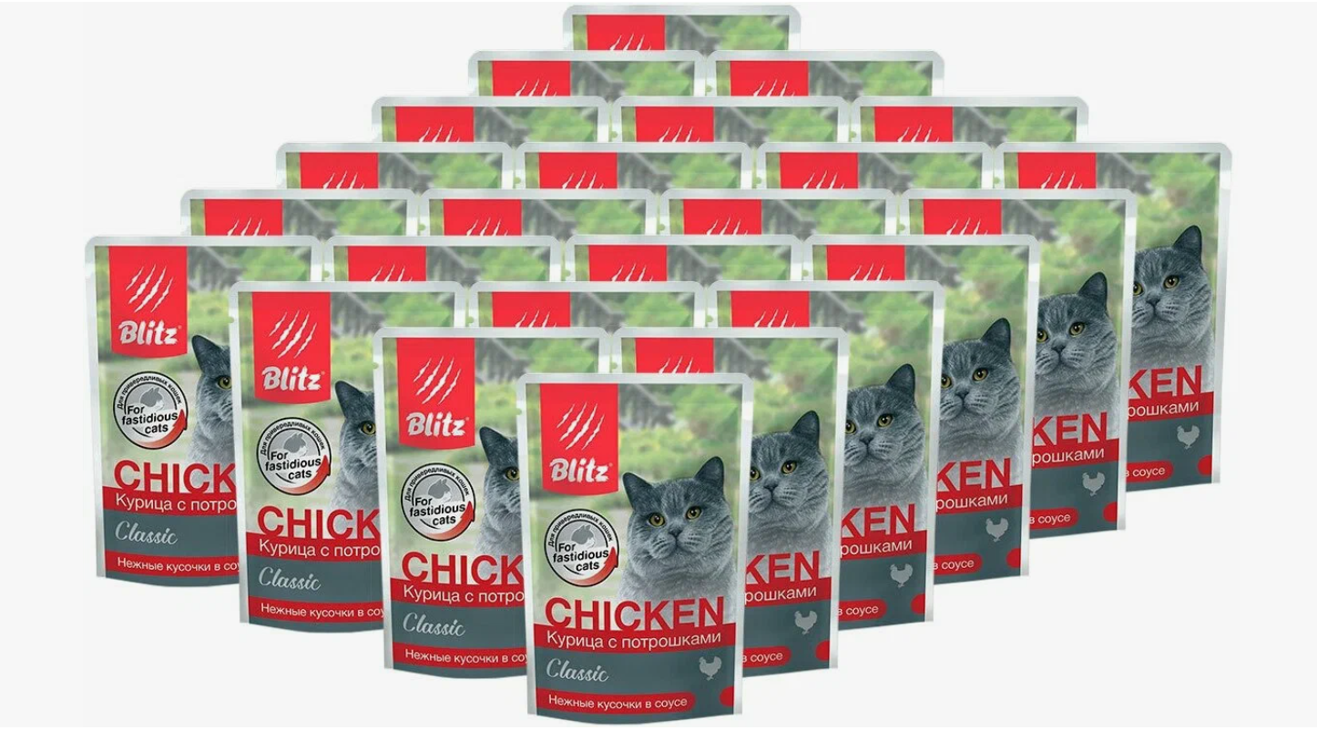 Корм влажный для кошек с курицей BLITZ паучи, набор 85г x 24шт