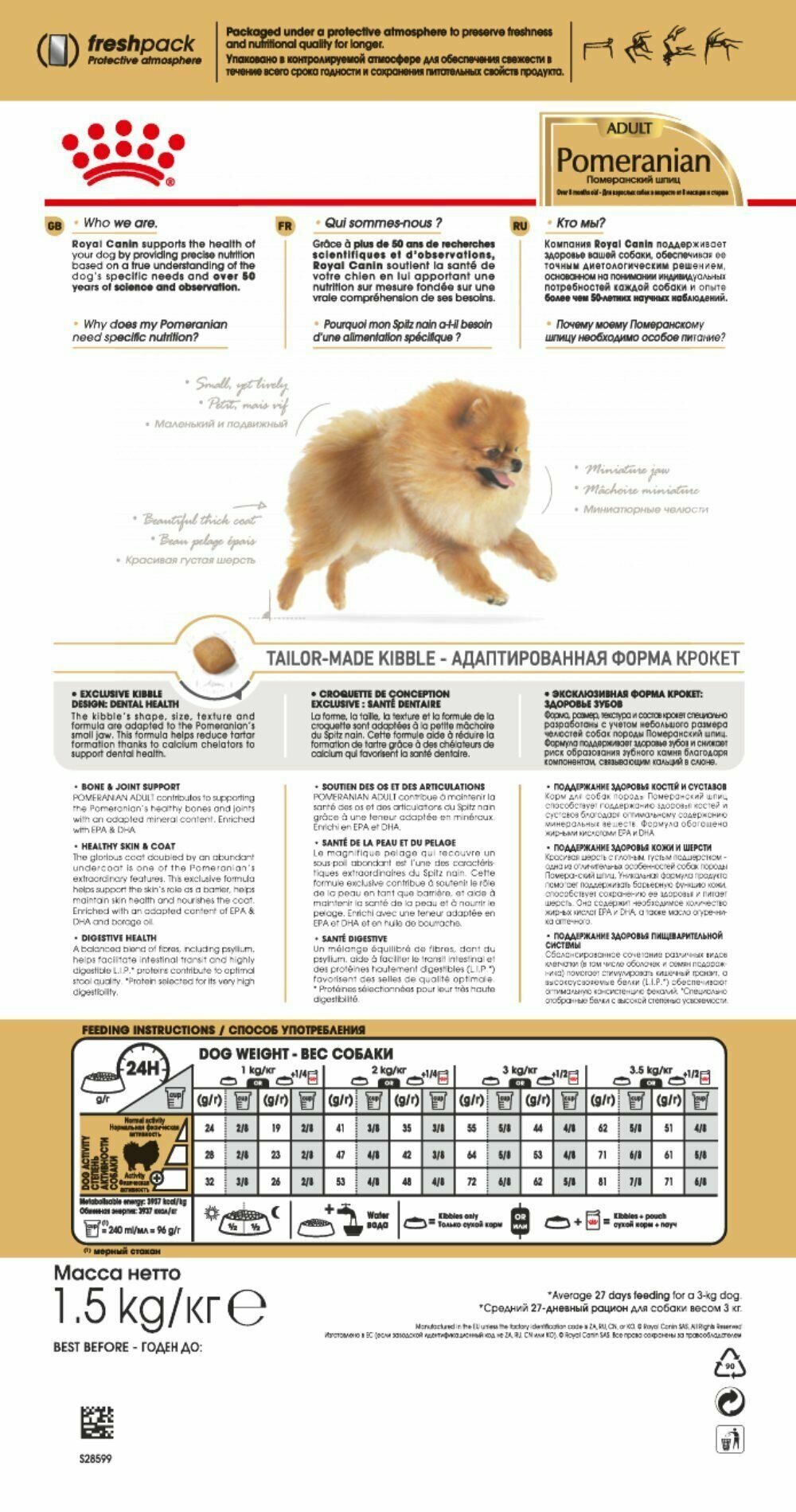Royal Canin Pomeranian Adult сухой корм для собак породы померанский шпиц в возрасте от 8 месяцев - 1,5 кг - 1,5 кг