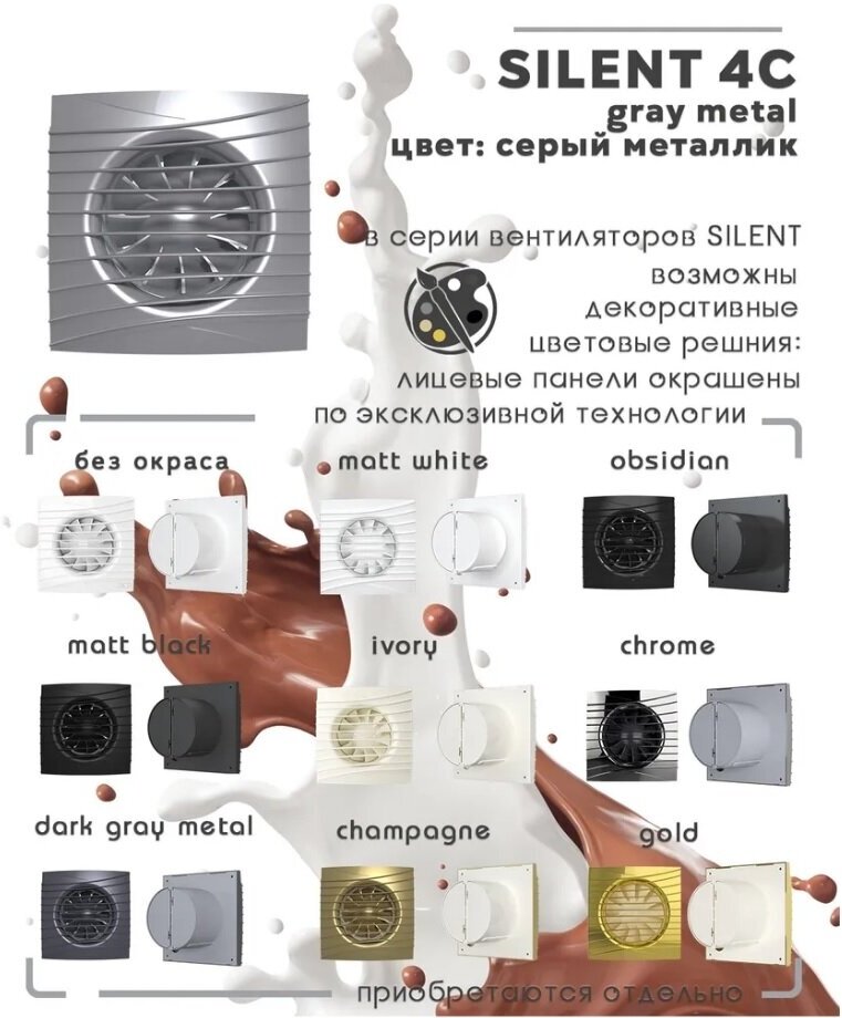 Вентилятор осевой вытяжной с обратным клапаном для кухни/ванной DICITI SILENT 5C Gray Metal Серебристый D125 10В