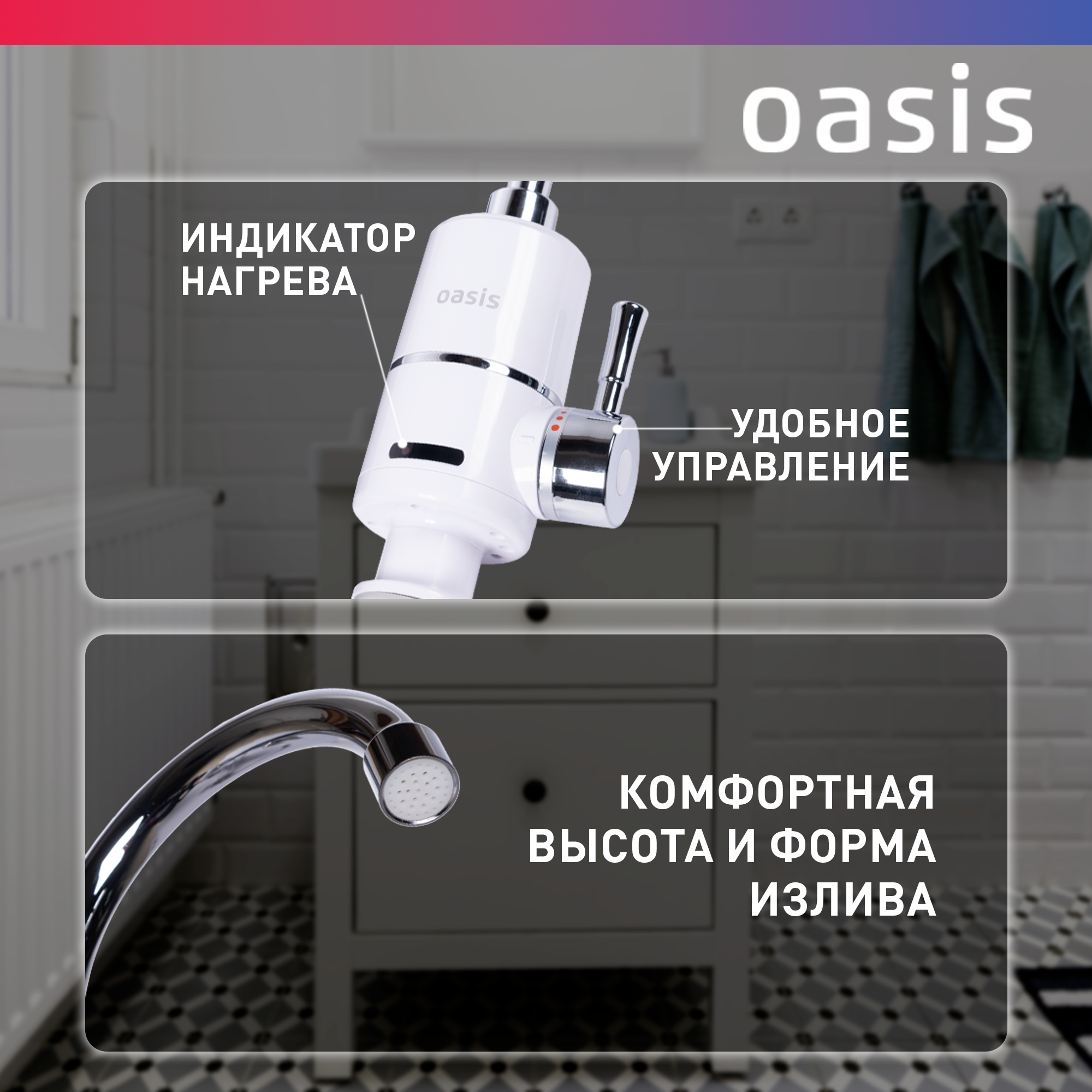 Водонагреватель проточ. Oasis KP-P (X) /3кВт, возможность поворачивать кран на 360°/