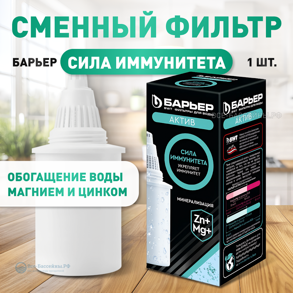 Кассета для фильтров-кувшинов БАРЬЕР Актив Сила Иммунитета, 1 шт, укрепляет иммунитет, обогощает магнием и цинком