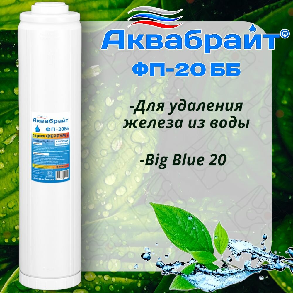 Картридж Аквабрайт ФП-20ВВ для удаления железа из воды Big Blue 1шт