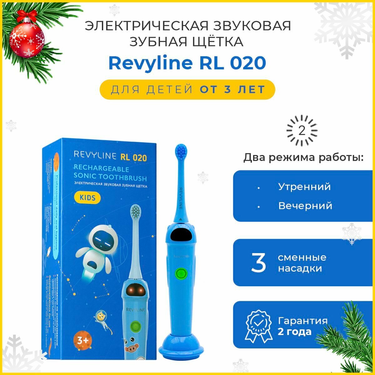 Звуковая зубная щетка Revyline RL 020 Kids (3 насадки), blue