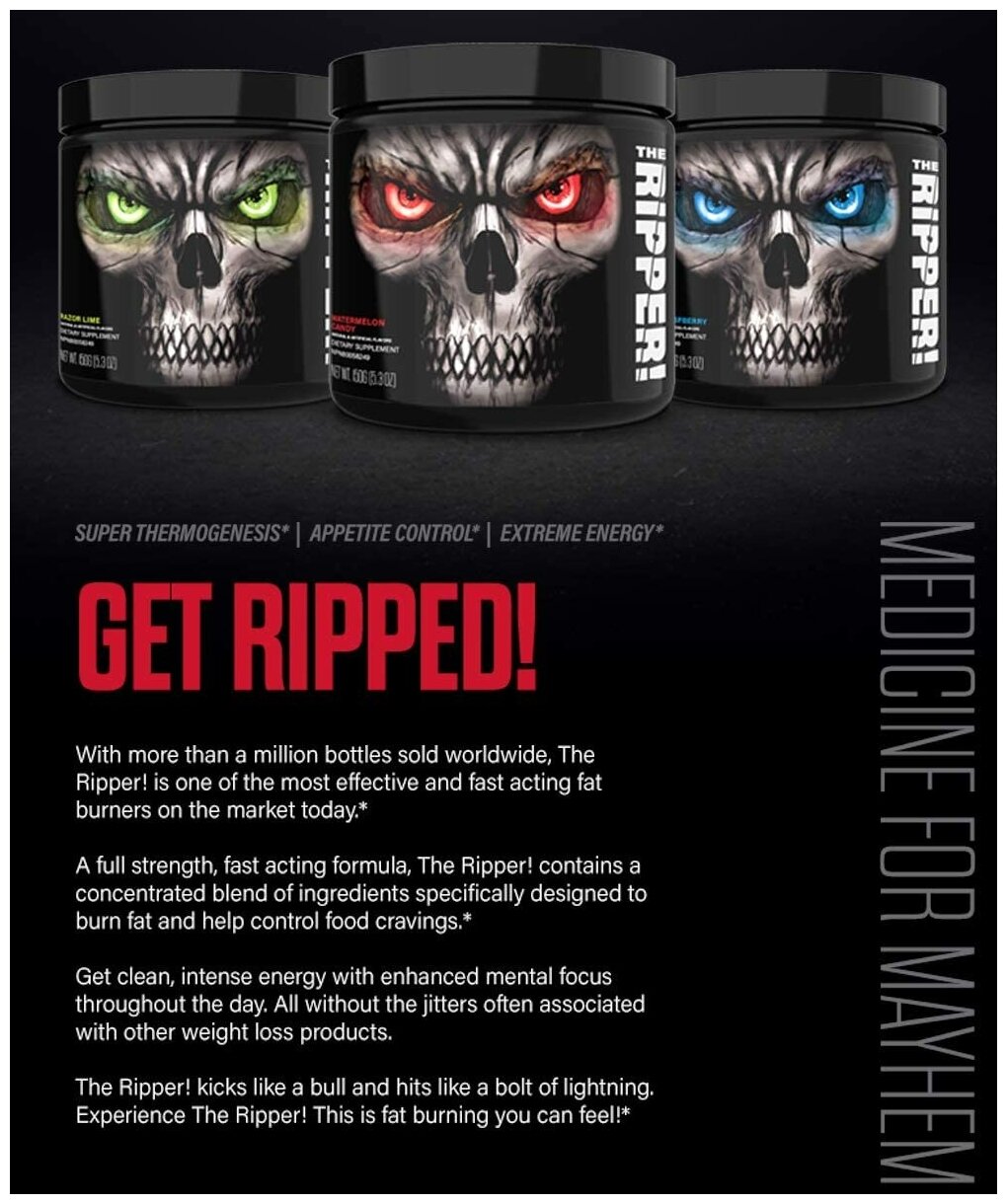 Он рабочий. После приема натощак с утра, уже через 10 минут приятное покалывание под кожей, появляется желание пойти потренить. Регулирует аппетит, Ем 3 раза в день, но через силу и порции значительно меньше. Если питаться дробно, эффект будет еще лучше. С утра ложку, через 5 часов еще ложку и перед тренировкой за пол часа предтрен. Плюс курс тестобустера. В зале чувствую себя Одином. Не рекомендация, смотрите по здоровью сердца и ЦНС В общем The Ripper хорош! |