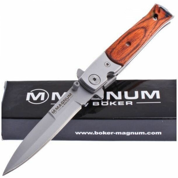 Boker Складной нож Magnum Stiletto сталь 440A, рукоять сталь/дерево (01YA101)