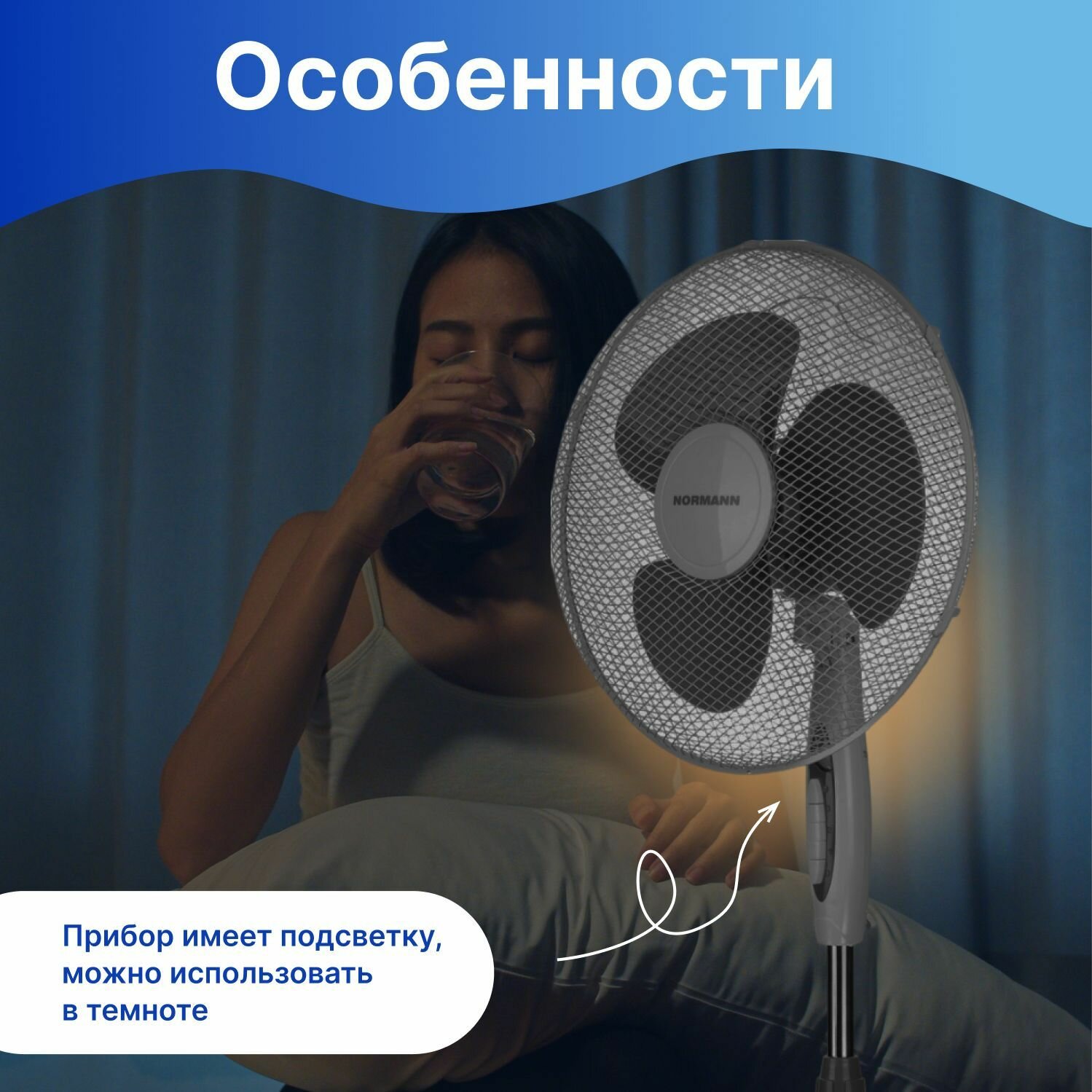 Вентилятор электрический напольный ACF-194 NORMANN (45 Вт; диаметр 40см; 3 скорости; автоповорот; ночник) (ACF-194)