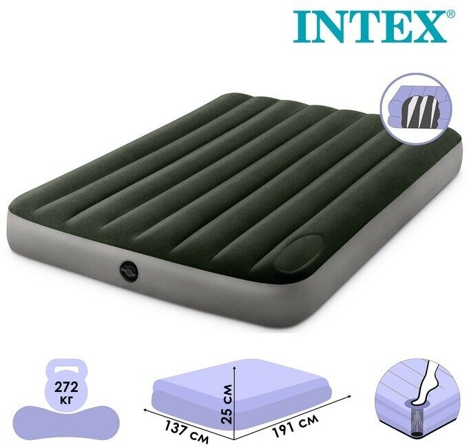 Матрас надувной Intex, 191х137х25 см, насос встроенный, ножной, флокированный, 273 кг