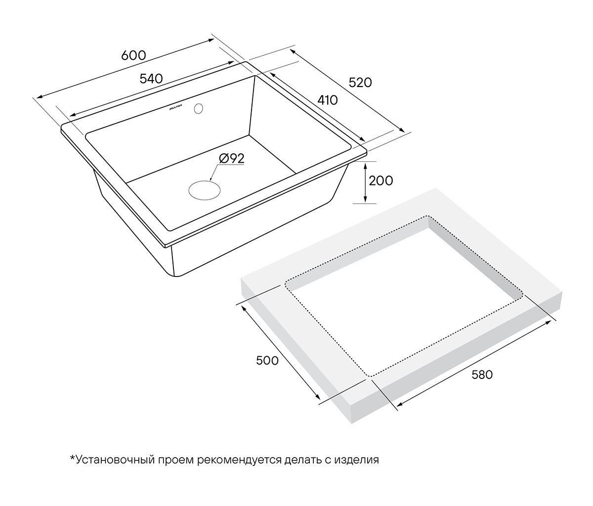 Мойка гранитная KANTE, PM106052-BL, черный, 600х520 мм, Paulmark