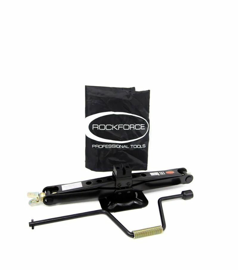 Домкрат механический "ромб" 2,5т с резиновой накладкой и ручкой-воротком с головкой 19мм в водоотталкивающем чехле ROCKFORCE
