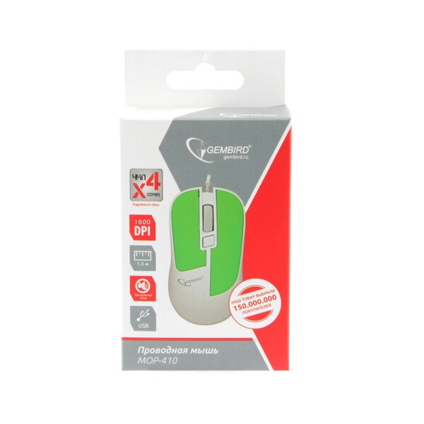 Купить Мышь проводная Gembird MOP-410-GRN, 1600 dpi, USB, зеленый