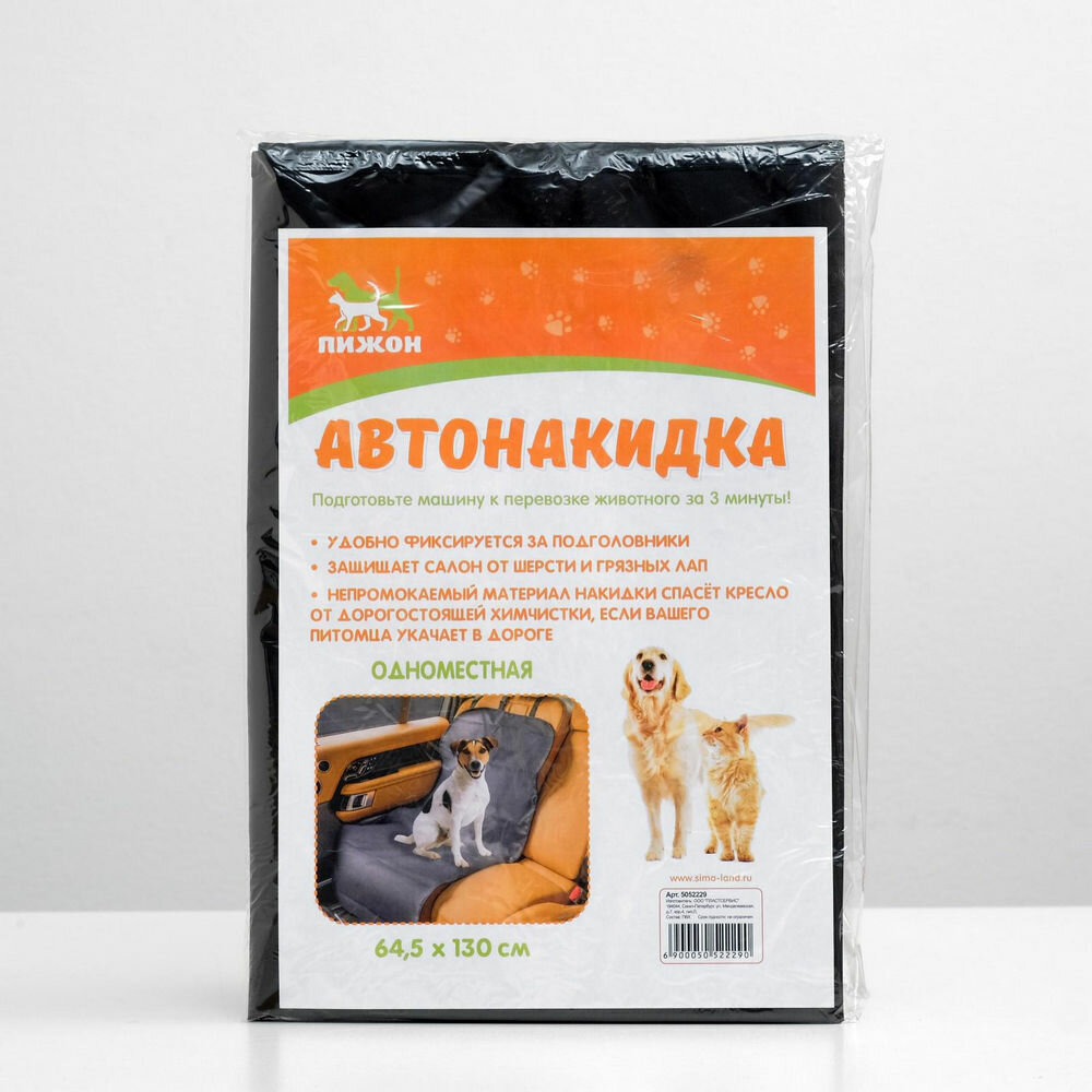 Купить Накидка на авто сиденье "Пижон" одноместная, ПВХ, 64,5 х 130 см, чёрная 5052229