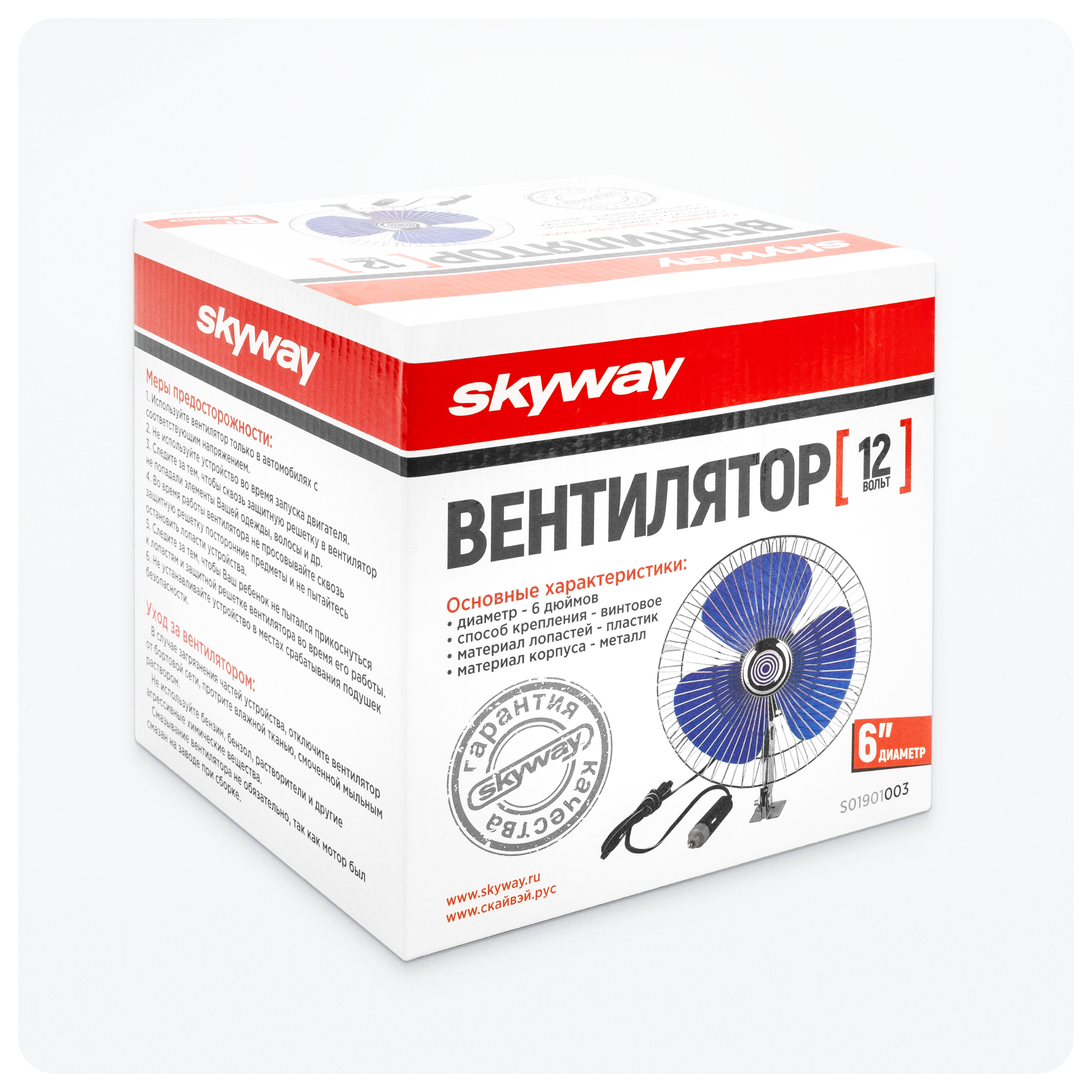 SKYWAY S01901003 Вентилятор салона 6" "SKYWAY" SV2612 (12V) (винт. крепление металл - пластик)