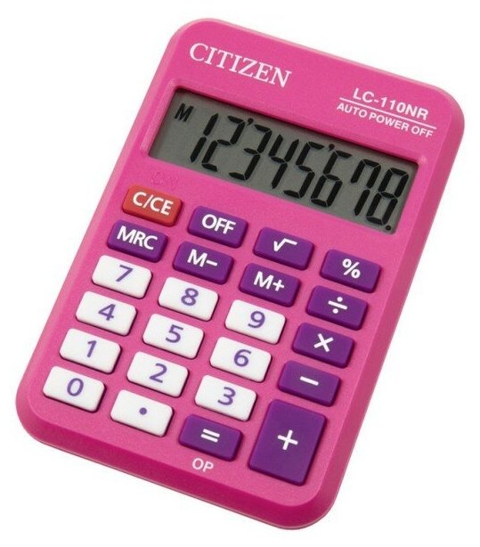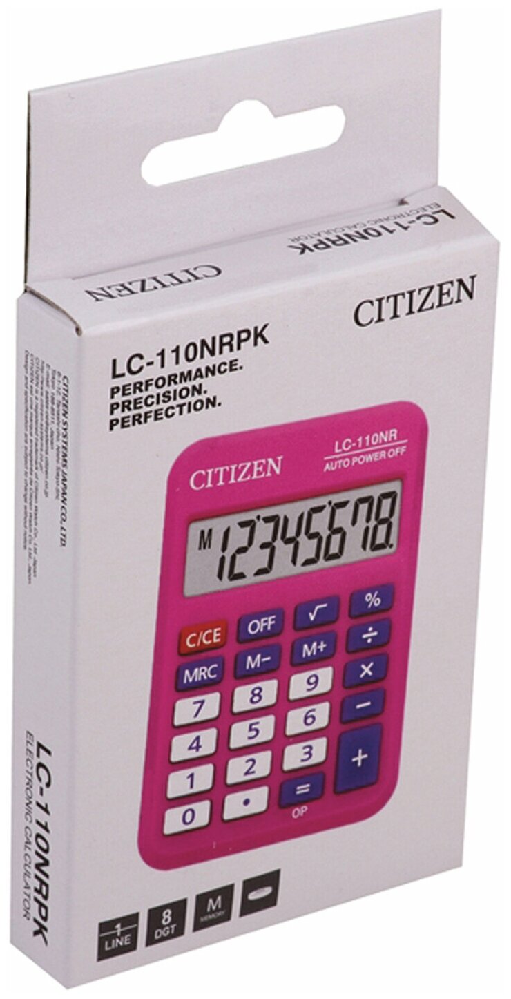 Калькулятор карманный Citizen LC-110NR-PK, 8 разрядов, питание от батарейки, 58*88*11мм, розовый LC- И 4562195139409