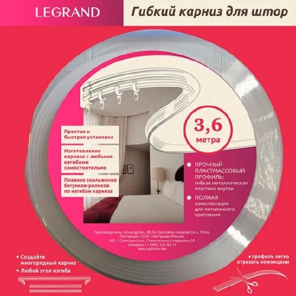 Гибкий карниз для штор LEGRAND (длина 3,6м), 1шт