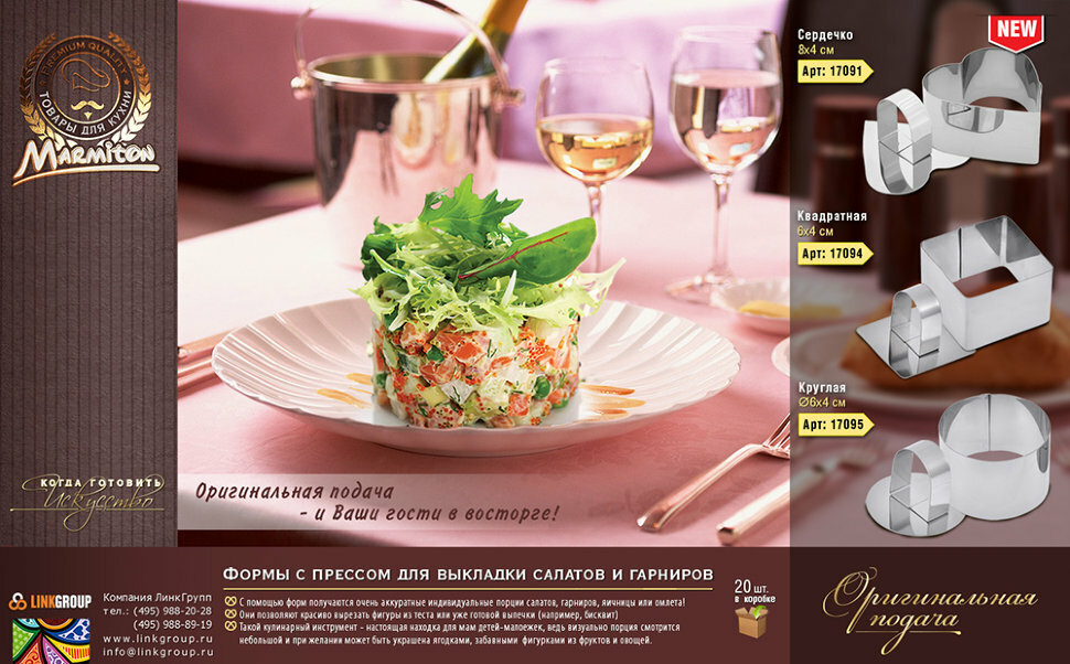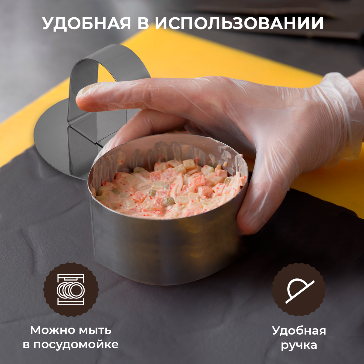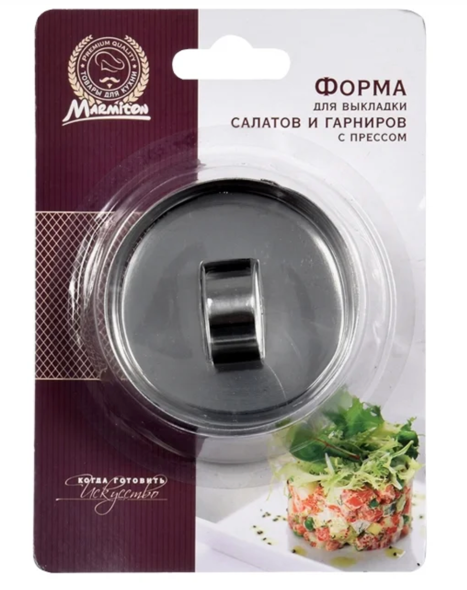 СохранитьФорма с прессом для выкладки салатов и гарниров из нержавеющей стали, круглая, 8*4 см MARMITON интересное: