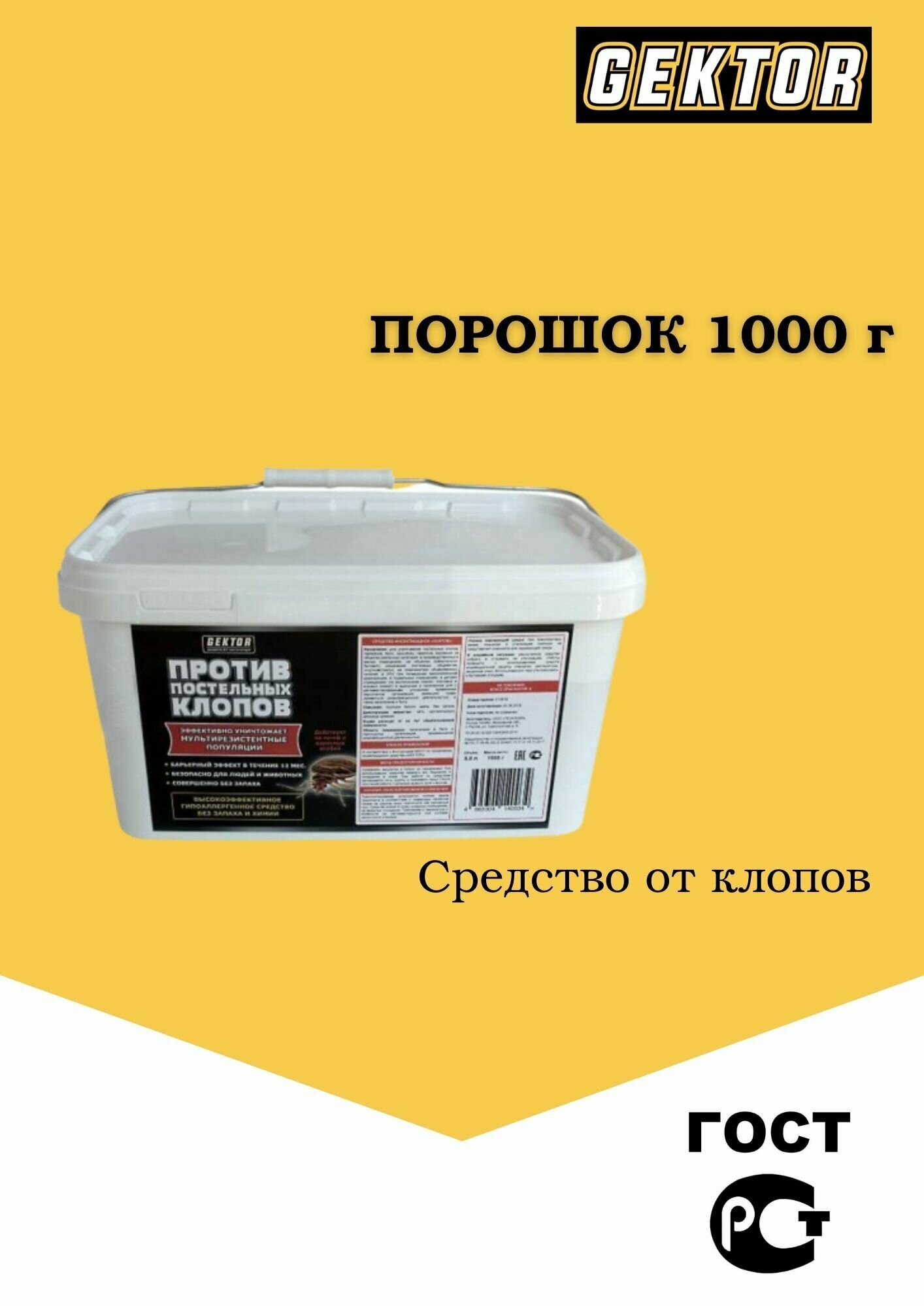 Порошок Гектор (GEKTOR) против постельных клопов, 1000 г, 5800 мл