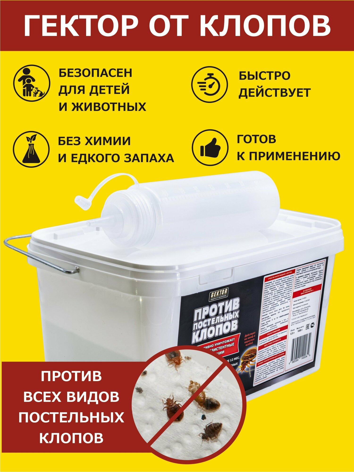 Gektor (Гектор) против постельных клопов 1000 гр (5800 мл)