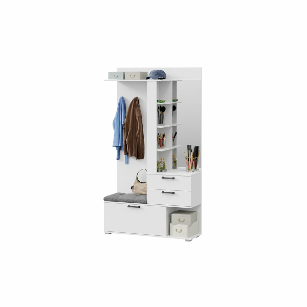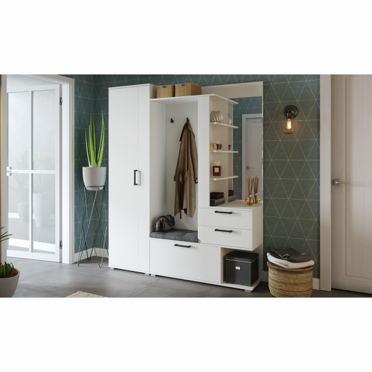 Купить Прихожая мебель в коридор белая с зеркалом и ящиками (ВхШхГ) 198х109х36 см, Эрика тип 2
