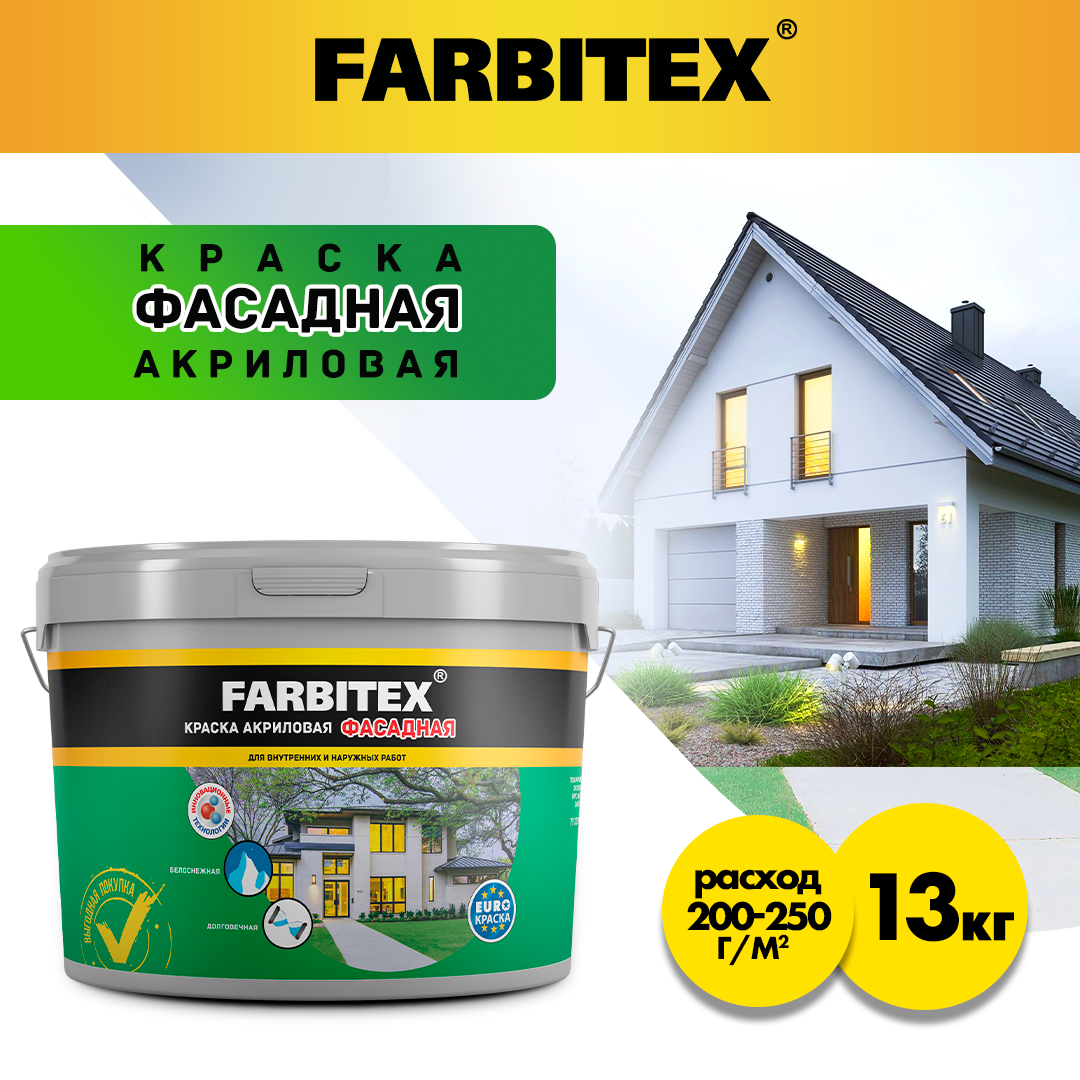 Краска акриловая фасадная FARBITEX (Артикул: 4300001556; Цвет: Белый; Фасовка = 13 кг)