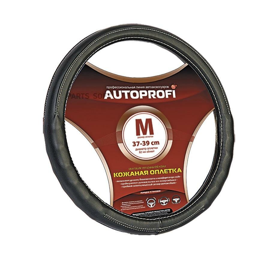Кожаная оплётка руля AUTOPROFI AP-130 BK (M)