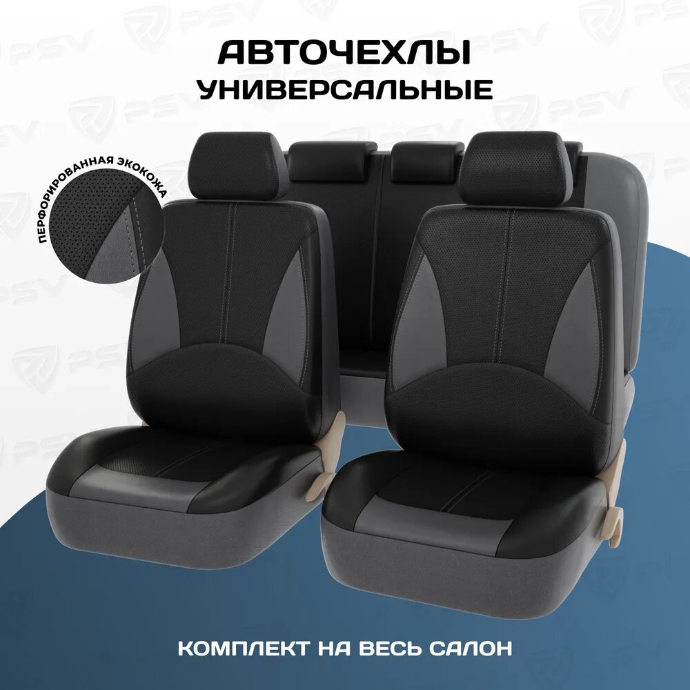 PSV 124613 Чехлы автомобильные универсальные эко-кожа черный "PSV" Imperial Next (серая строчка)