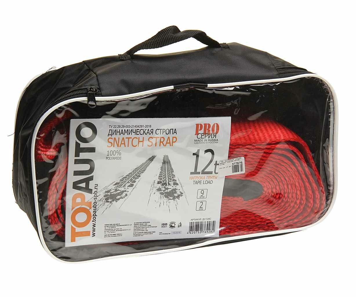TOPAUTO ДС129С Трос буксировочный 12т 9м ленточный динамический (петля-петля) в сумке ТОП авто
