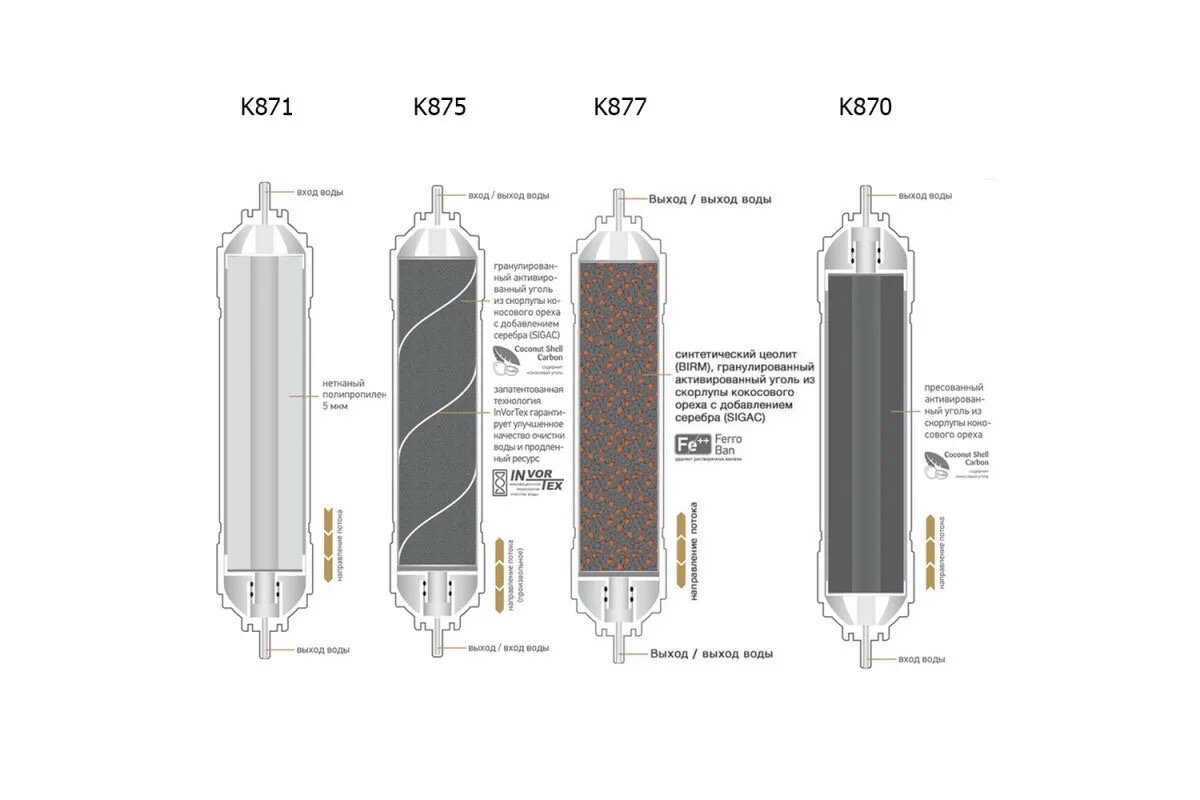 | Плюсы: | Тонкие, занимают меньше места под раковиной чем у других производителей. Вкусная и чистая вода целый год. |