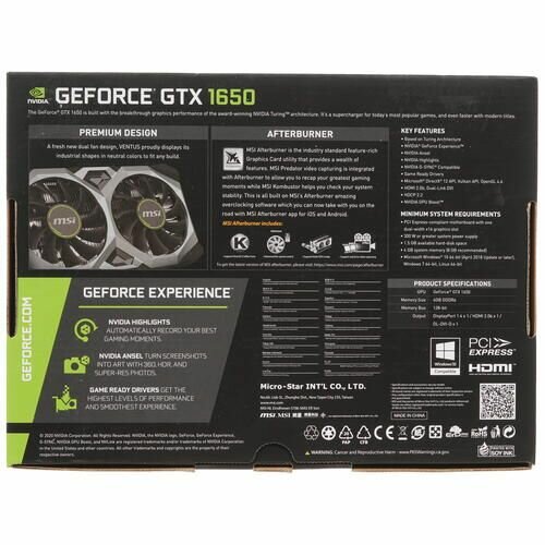 Видеокарта MSI GeForce GTX 1650 4096Mb D6 VENTUS XS OC V1 (GTX 1650 D6 VENTUS XS OCV1)