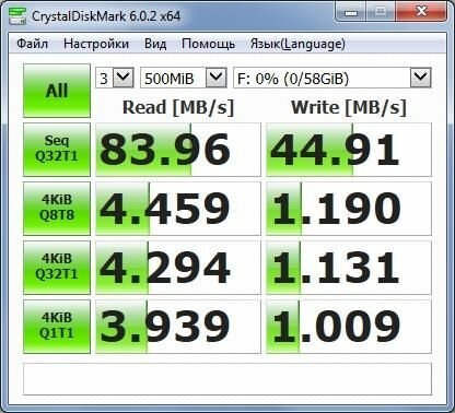 №1: Внимание: Будет проверено только 59605 из 59606 MByte. Тест завершился без ошибок. Вы можете удалить тестовые файлы *.h2w или проверить их снова. Скорость записи: 28.8 MByte/s Скорость чтения: 63.5 MByte/s H2testw v1.4 №2: Внимание: Будет проверено только 59605 из 59606 MByte. Тест завершился без ошибок. Вы можете удалить тестовые файлы *.h2w или проверить их снова. Скорость записи: 23.4 MByte/s Скорость чтения: 64.0 MByte/s H2testw v1.4 |