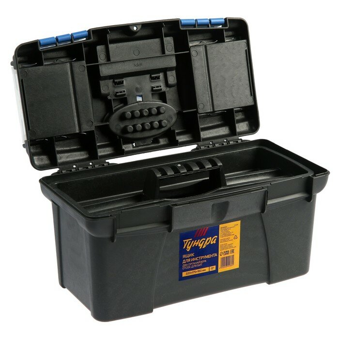 Ящик для инструмента тундра, 13", 320 х 175 х 160 мм, пластиковый, два органайзера. В наборе 1шт.