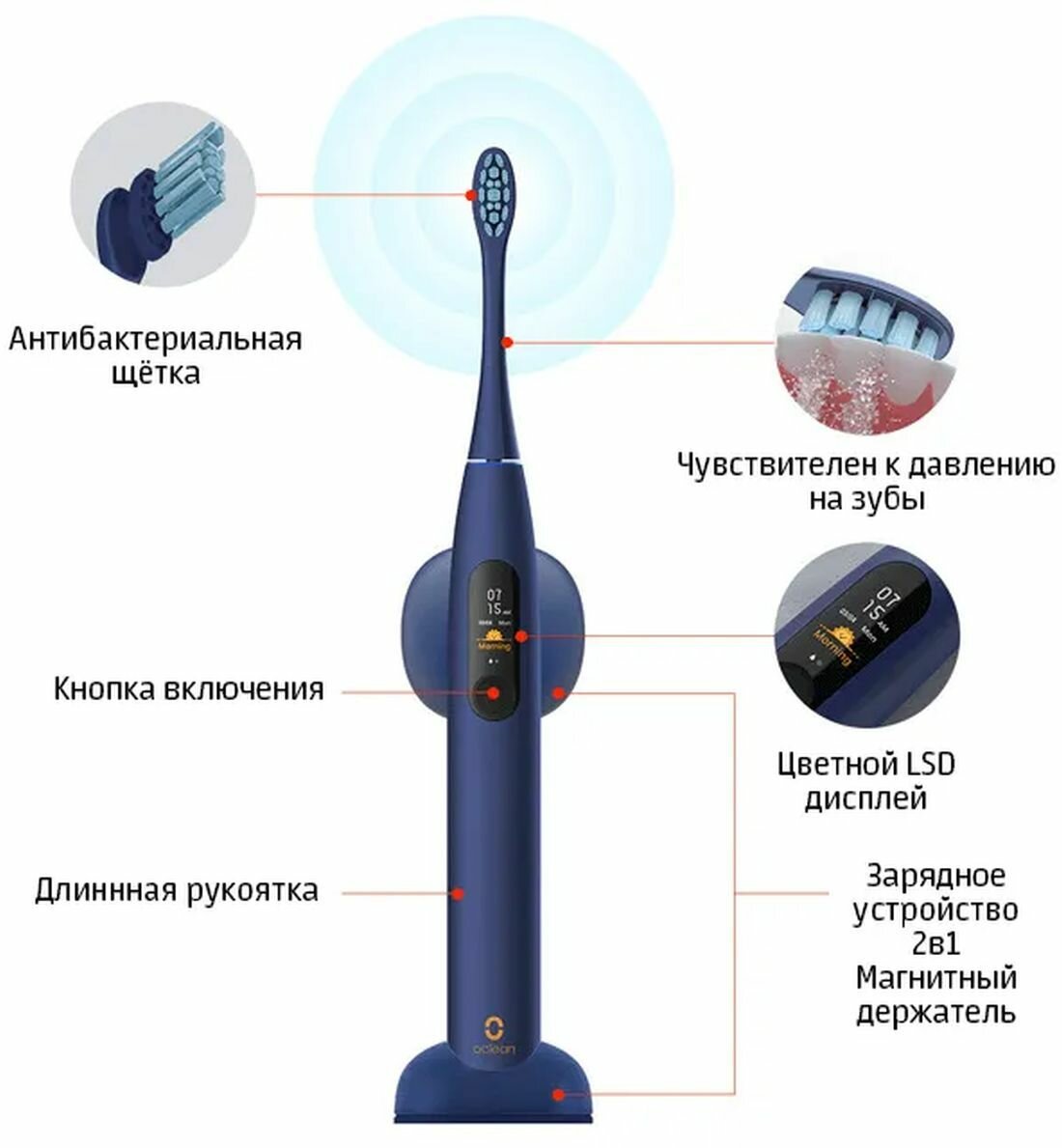 Электрическая зубная щетка OCLEAN X Pro Y2087 насадки для щётки: 1шт, цвет:синий [c01000488] интересное: