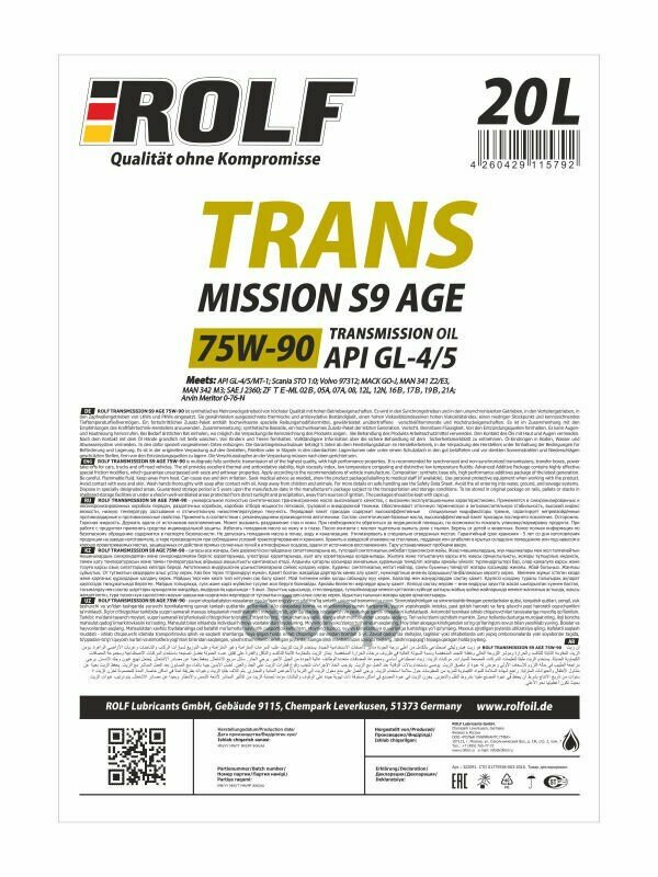 ROLF Transmission S9 AGE SAE 75W90 API GL-4/GL-5 (20л)