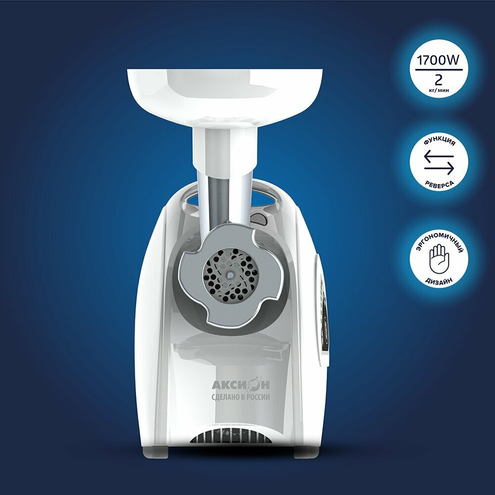 Мясорубка Аксион М 42.03 1700 Вт, 2 кг/мин, реверс, соковыжималка, овощерезка, насадка для колбас