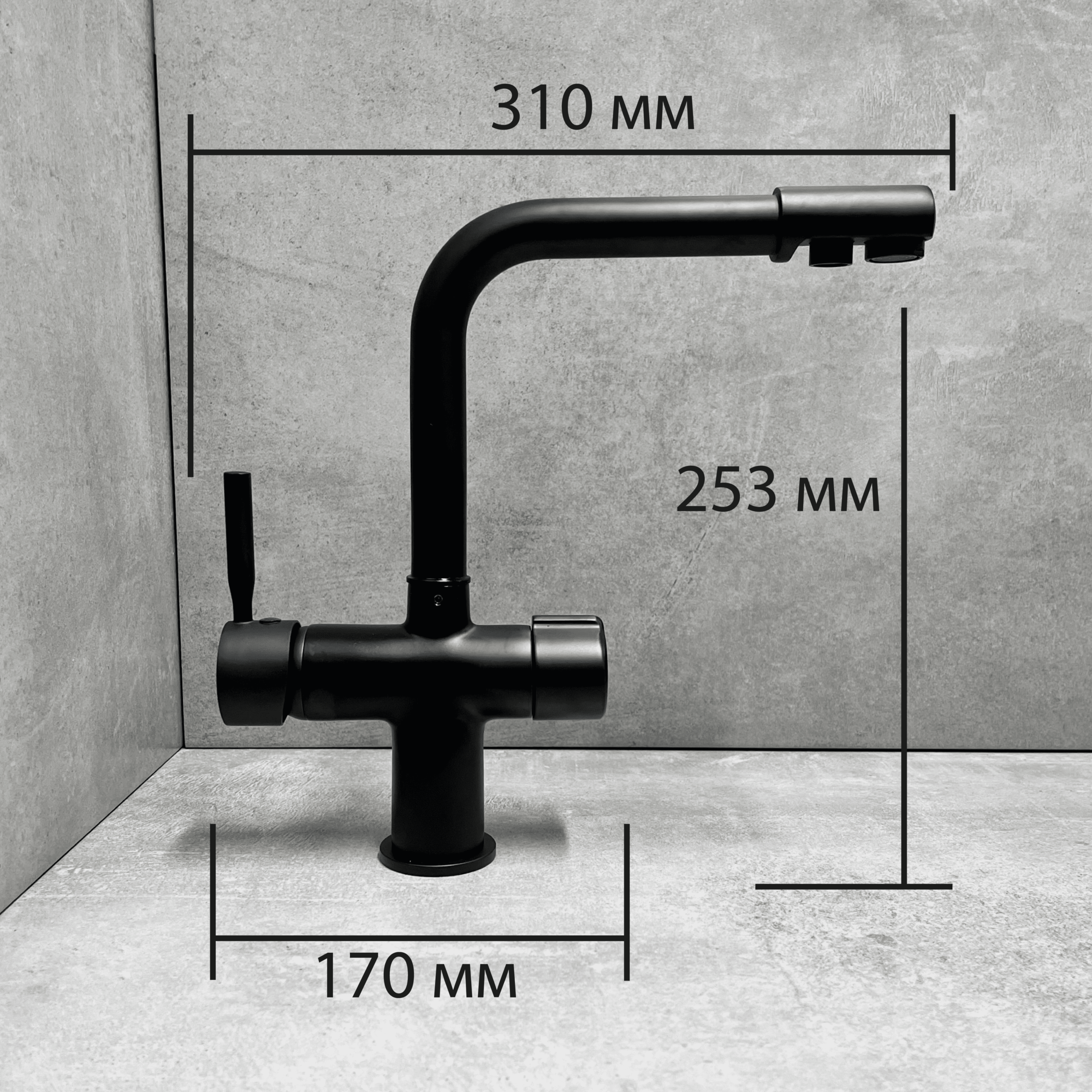 Смеситель для кухни Haiba HB70088-7 с подключением фильтра питьевой воды, черный