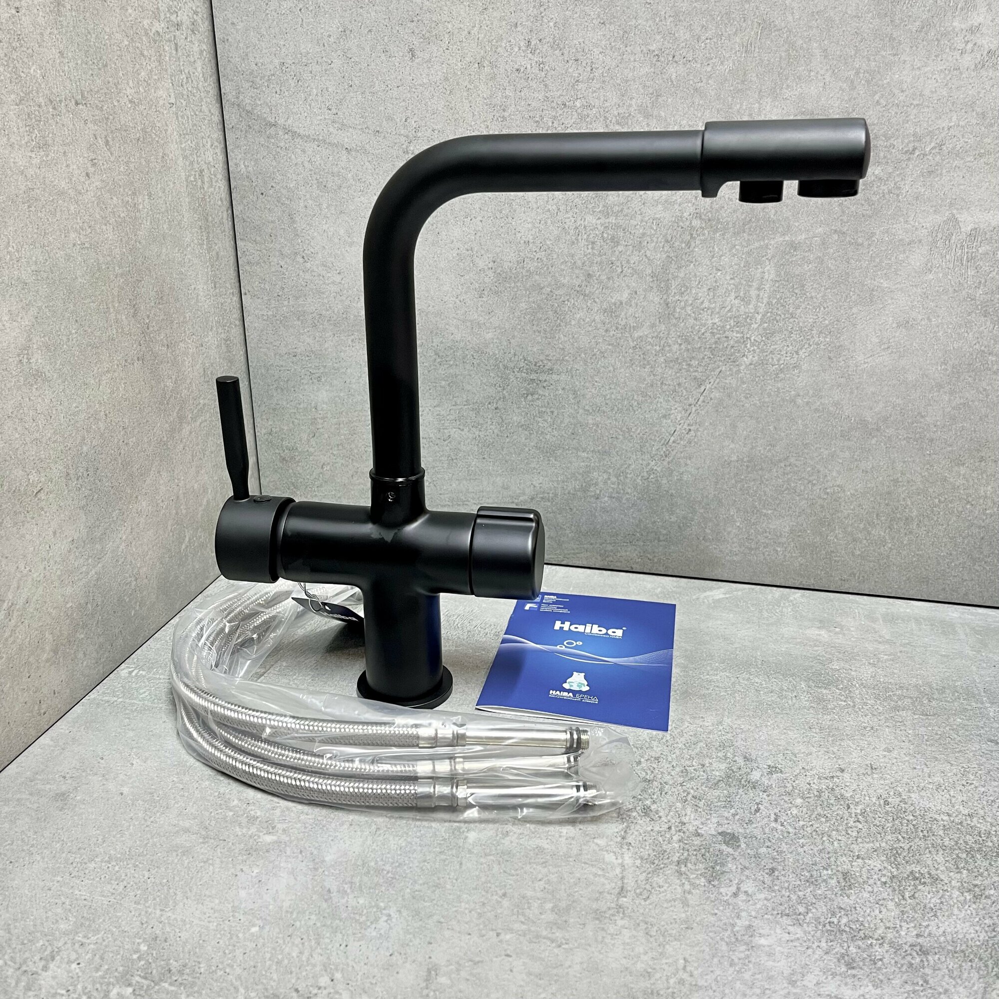 Смеситель для кухонной мойки Haiba HB70088-7 с подключением к фильтру с питьевой водой, черный