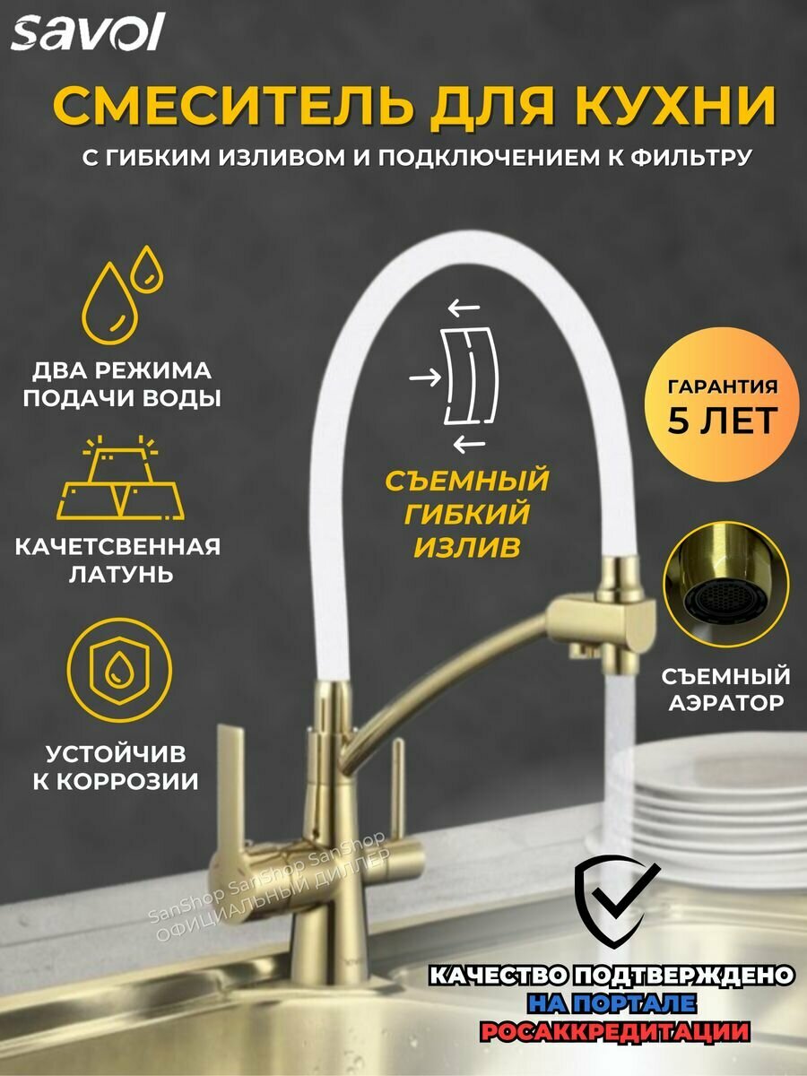 Savol Смеситель для кухни золотой под фильтр Savol (S-L1805B-05)