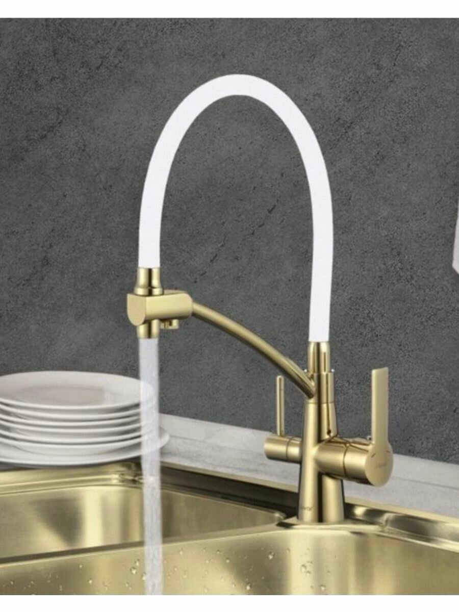 Смеситель для кухонной мойки под фильтр Savol золото, белый S-L1805B-02