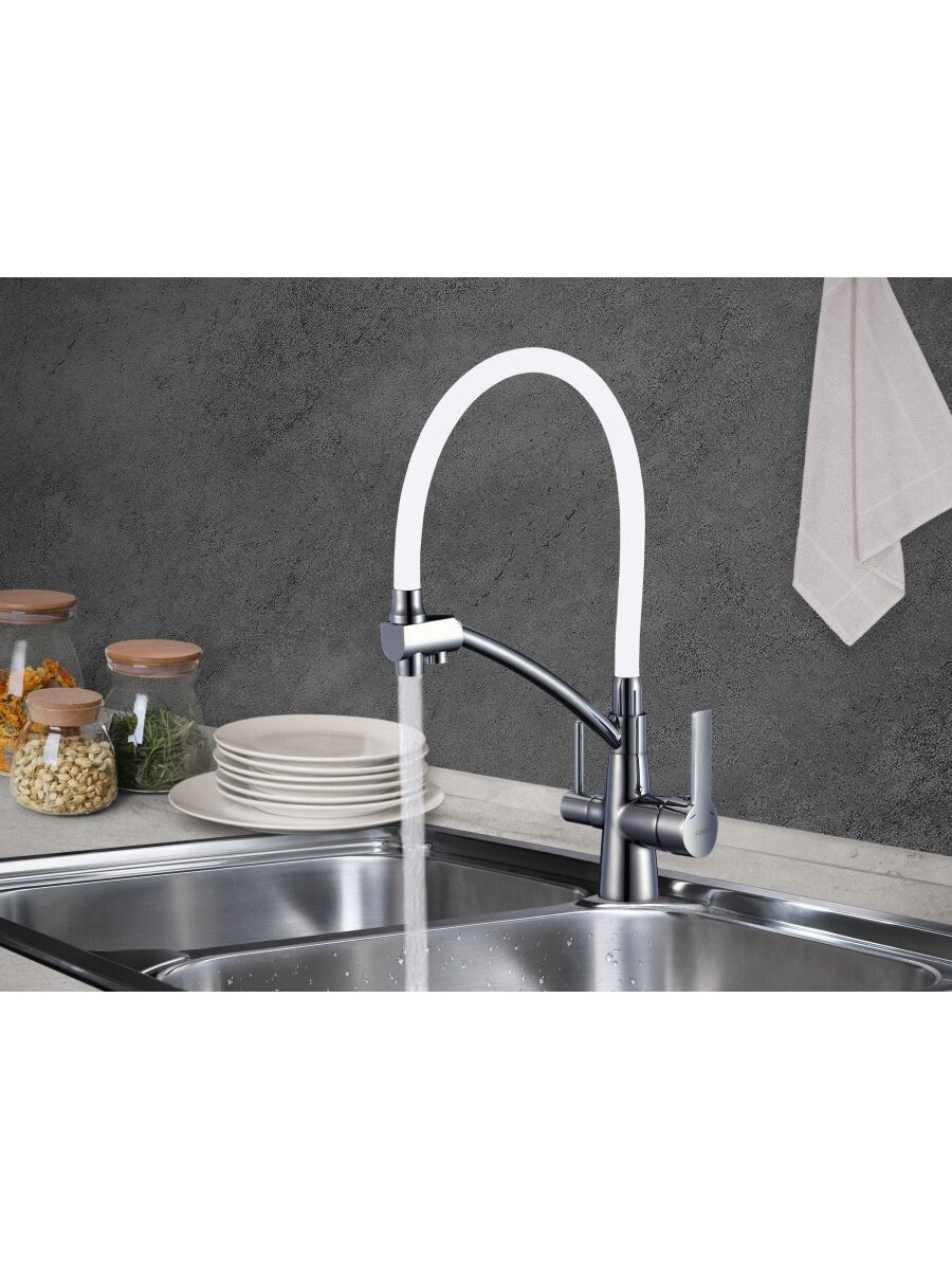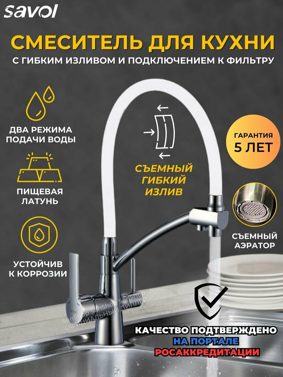 Смеситель Savol S-L1805-02 для кухни, с подключением к фильтру, цвет хром / белый