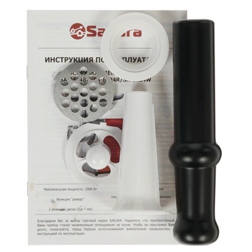 Мясорубка SAKURA SA-6424W, 2000Вт, реверс + компл насадок /1/4/