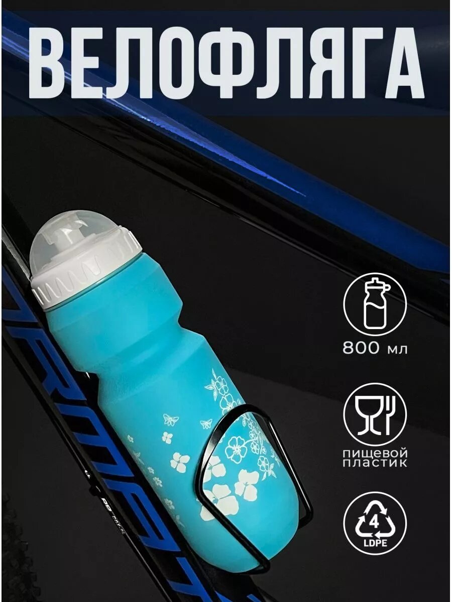 Велофляга STG 800 мл, CSB-532L, голубая с белым рисунком и крышкой (Х88770)