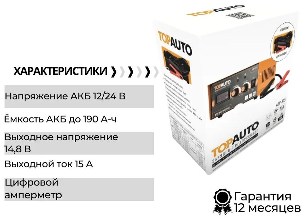 Автоматическое предпусковое зарядное устройство TopAuto АЗУ-315 15А, для 12/24В-АКБ до 190 А*ч 29359