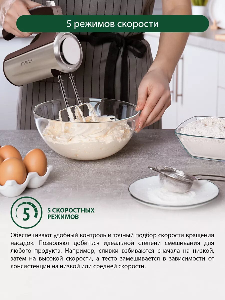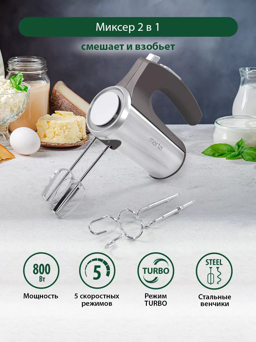 Миксер Marta MT-1513 металл пластик 5 скоростей 800Вт интересное: