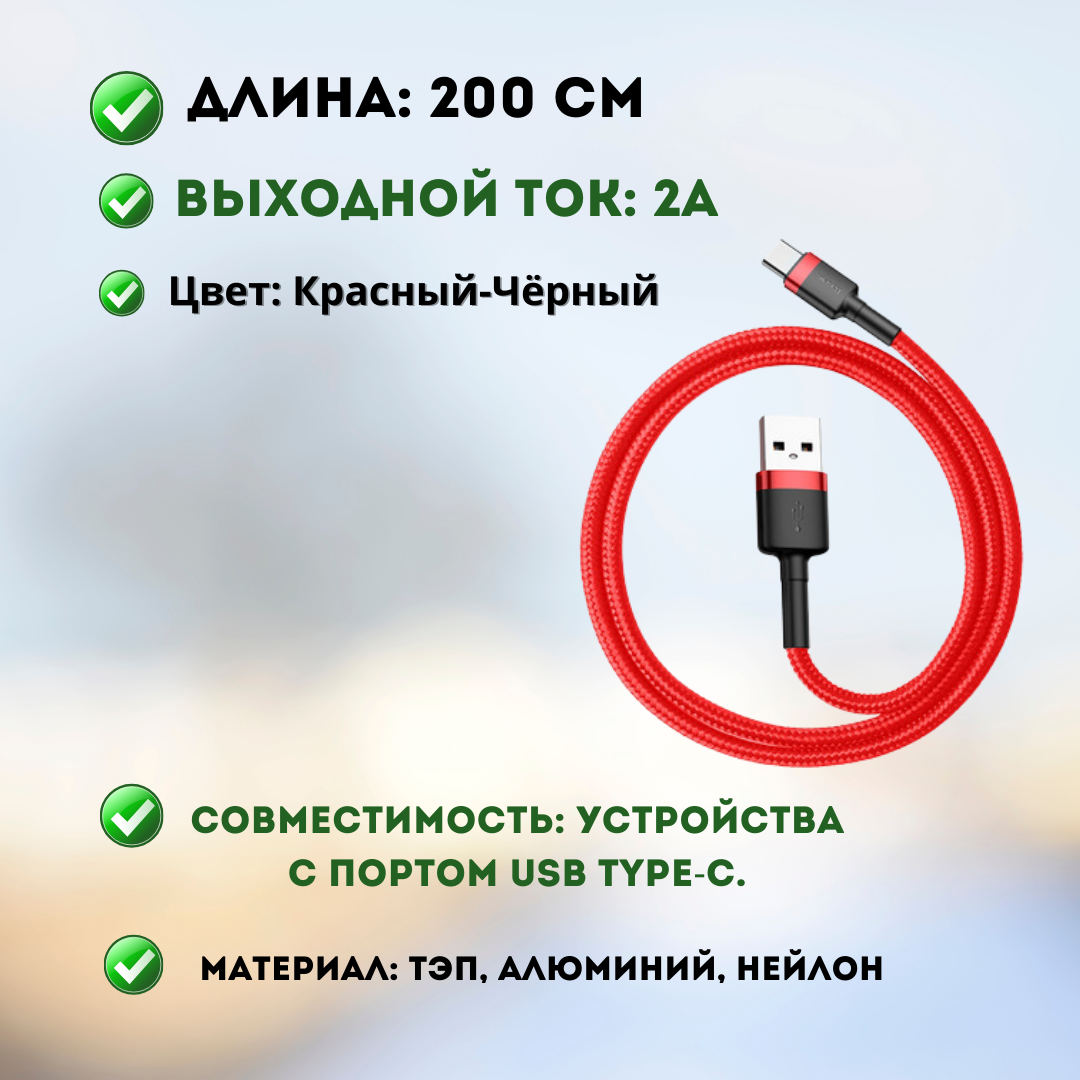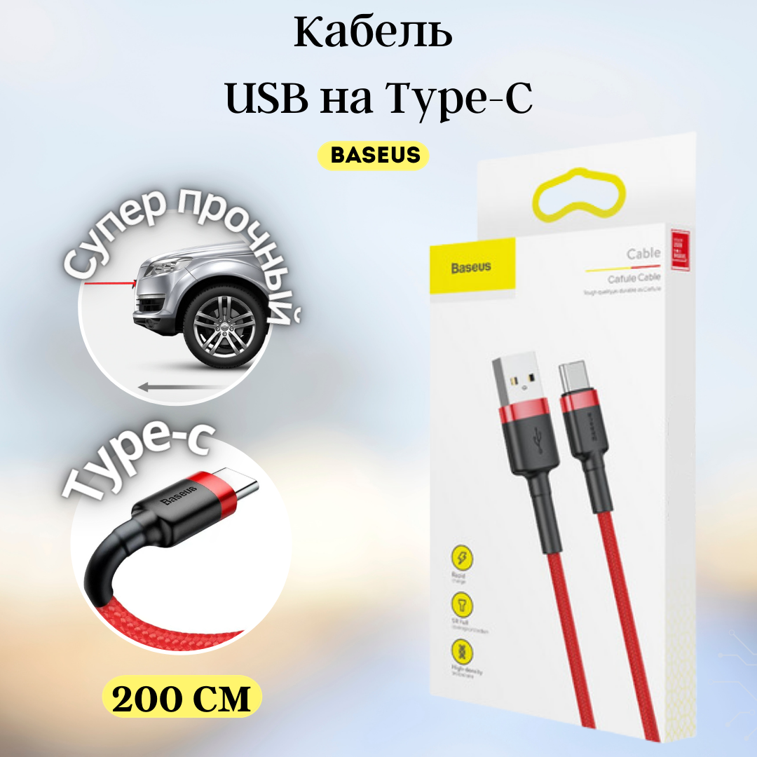Кабель usb type c 2 метра baseus провод Type C кабель тайпси