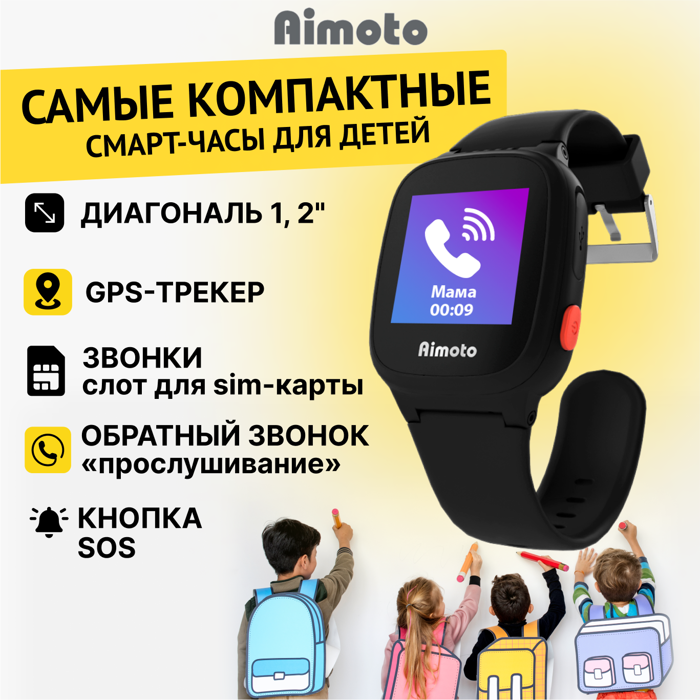 AIMOTO Умные часы-телефон с GPS Aimoto Kid Mini (Черный)