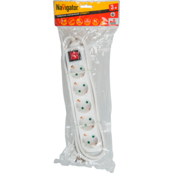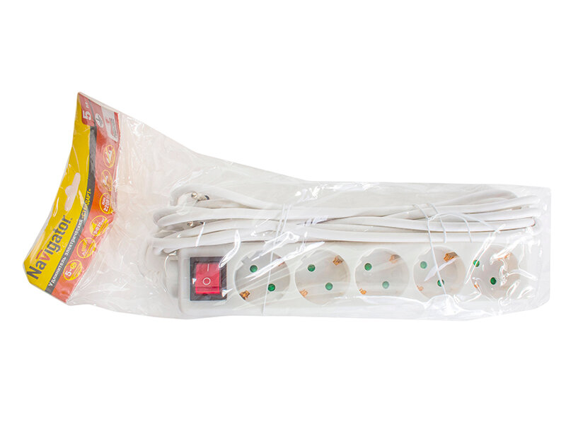 Удлинитель Navigator 71 558 NPE-S-05-500-ESC-3x0.75 с/з с выкл. 5 гн. 5м, цена за 1 шт.